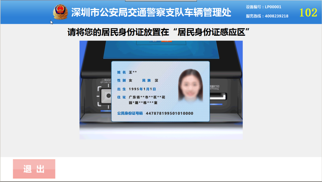將身份證放置在讀取區(qū)內(nèi)進(jìn)行身份證信息讀??;