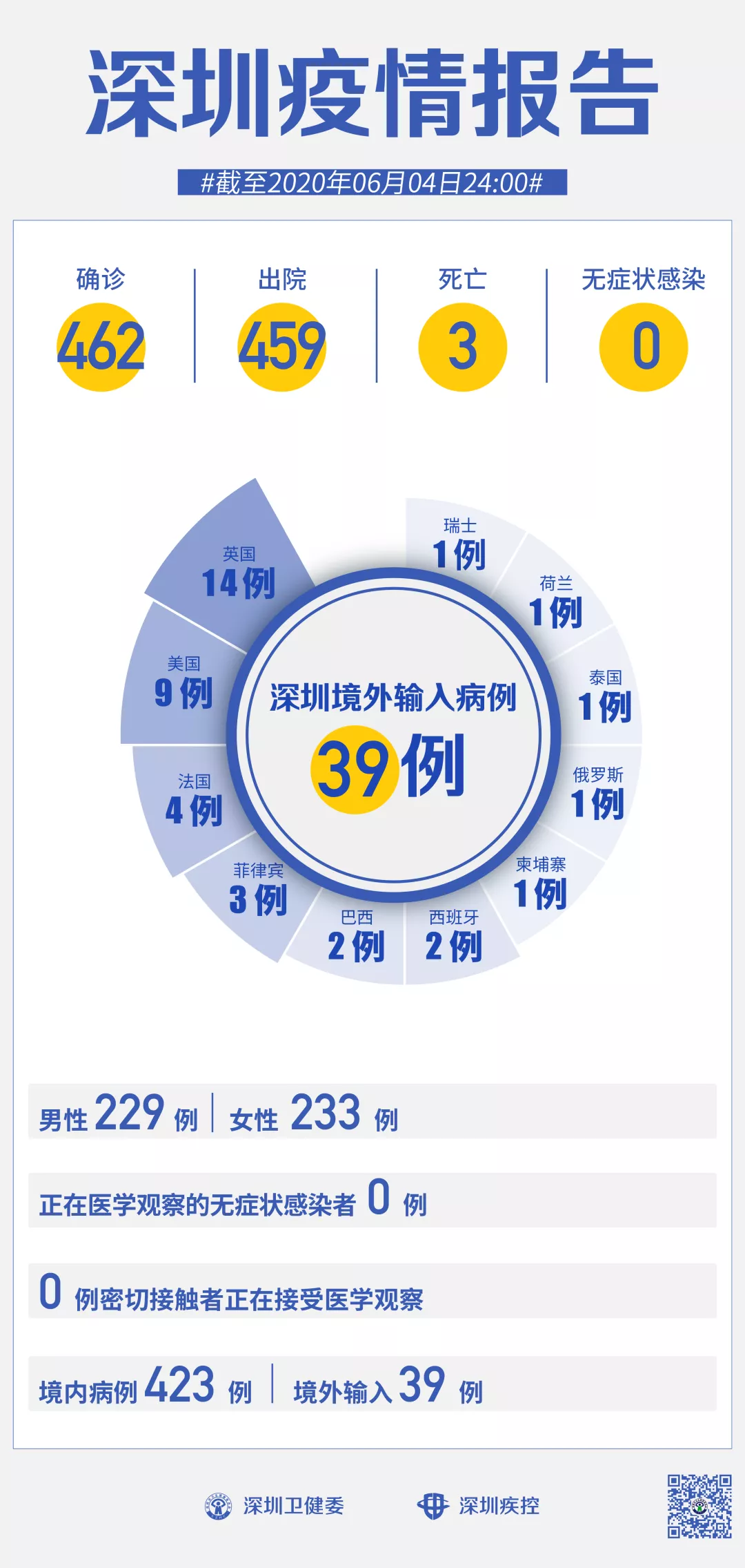 截至6月4日24時(shí),深圳累計(jì)報(bào)告新冠肺炎病例462例。
