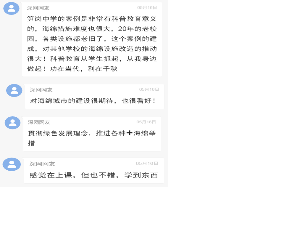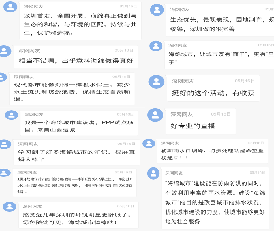 見圳客戶端·深圳新聞網2020年6月5日(見圳客戶端、深圳新聞網記者 葉梅)5月16日,深圳市海綿城市建設工作領導小組辦公室聯(lián)合深圳新聞網,在深網直播平臺對《深圳市海綿城市建設2019年度優(yōu)秀經驗分享會暨2020年度海綿城市獎勵申報啟動儀式》進行了線上全程直播。為答謝深圳網友對直播的全程關注,我們在后臺挑選出100位網友的精彩留言,為大家送上U盤一個,請在截圖中留言的網友于一周內(6月12日前)自主撥打聯(lián)系人電話認領禮品。