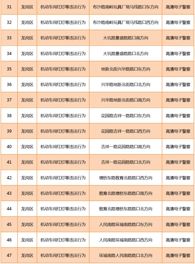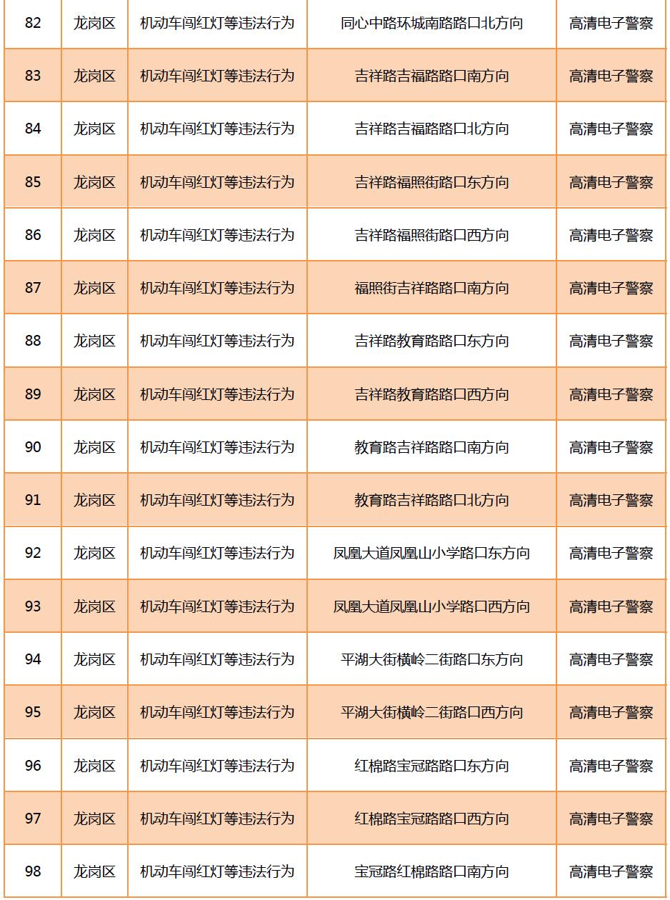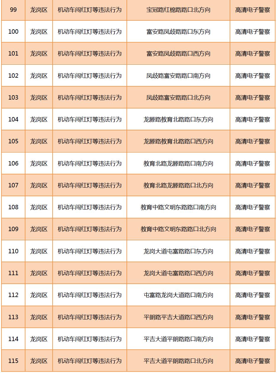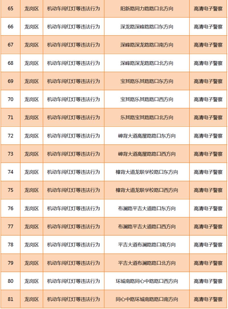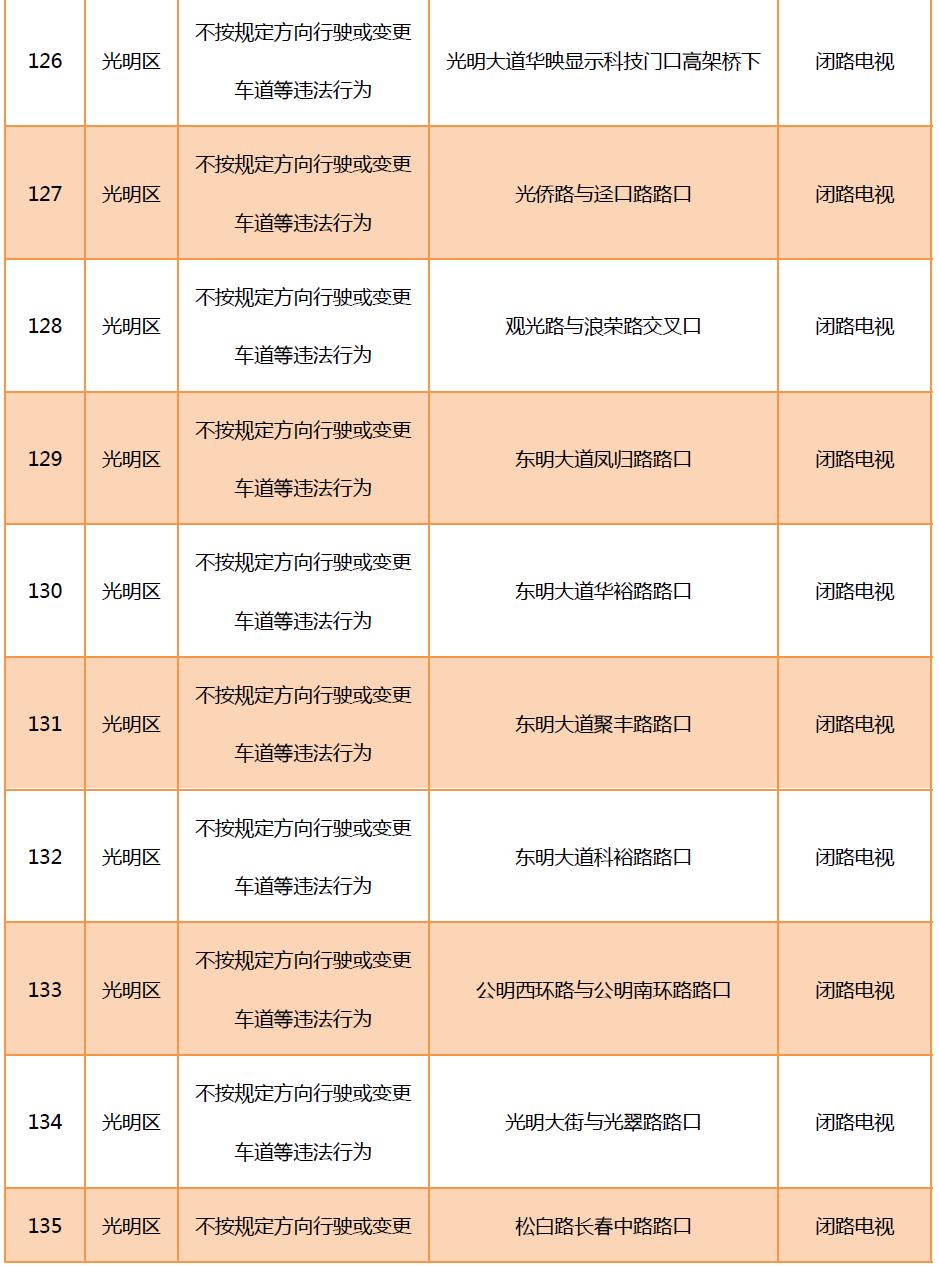 見圳客戶端?深圳新聞網(wǎng)2020年6月9日訊(晶報記者 鄧裴裴)6月9月,深圳市公安局交通警察局發(fā)布關(guān)于公布啟用190套交通技術(shù)監(jiān)控設(shè)備的公告,在福田區(qū)、羅湖區(qū)、寶安區(qū)、龍崗區(qū)、光明區(qū)啟用合計190套交通技術(shù)監(jiān)控設(shè)備,其中包括閉路電視、違停球、高清電子警察,類型為不按規(guī)定方向行駛或變更車道等違法行為和機動車闖紅燈等違法行為。