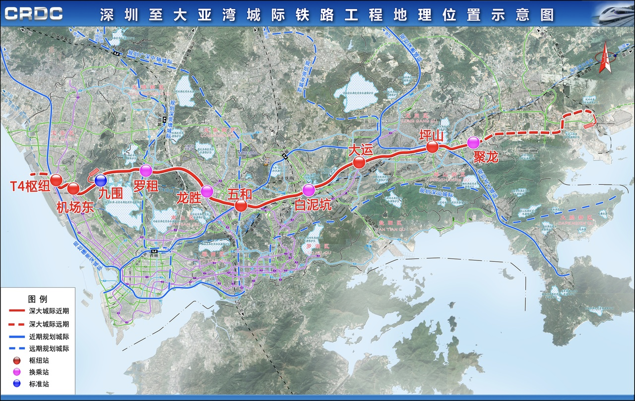 深圳市城市交通規(guī)劃設(shè)計研究中心受中國鐵路設(shè)計集團有限公司委托,開展深圳至大亞灣城際(以下簡稱“深大城際”)鐵路工程可行性研究社會穩(wěn)定分析專題研究。根據(jù)其發(fā)布的公示信息,深大城際鐵路規(guī)劃自寶安機場T4站至惠州大亞灣經(jīng)濟技術(shù)開發(fā)區(qū),途經(jīng)寶安區(qū)、龍華區(qū)、龍崗區(qū)、坪山區(qū)、惠州市大亞灣地區(qū),其中深圳段為近期實施工程,惠州段為遠期預留工程。