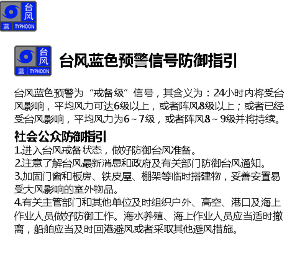 【臺風藍色、海浪藍色和雷電預警信號生效中】