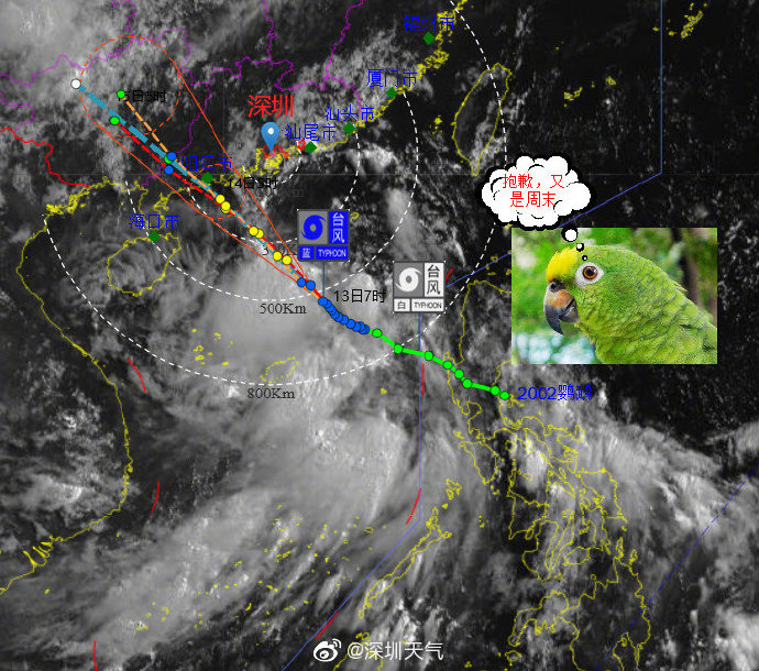 【臺風“鸚鵡”將從深圳西南方150-250公里的海面上掠過】