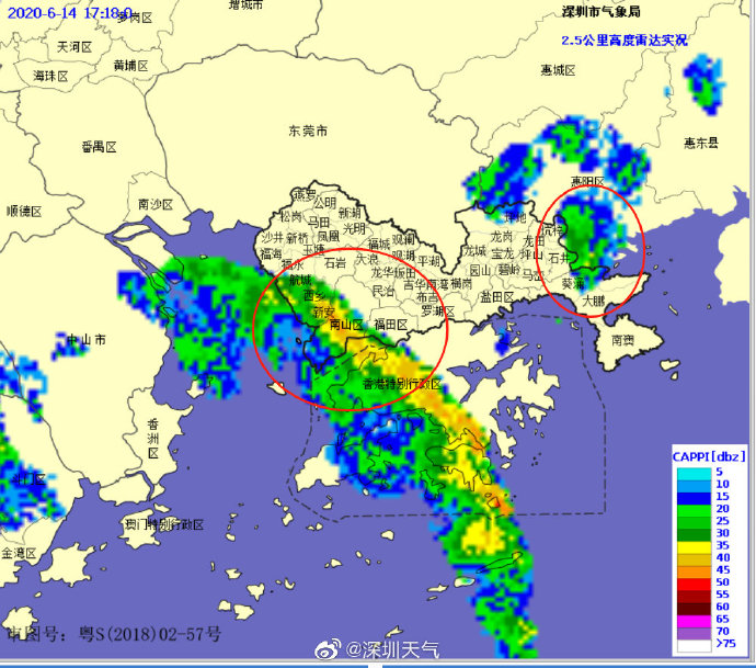 深圳市氣象臺2020年06月13日16時56分發(fā)布:預計17-20時,全市多云到陰天,有(雷)陣雨;降雨入夜后趨于明顯;偏東到東南風4-5級,陣風6-8級,風力逐漸加大;目前全市雷電預警信號和臺風藍色預警信號生效中,外出注意交通行駛安全。