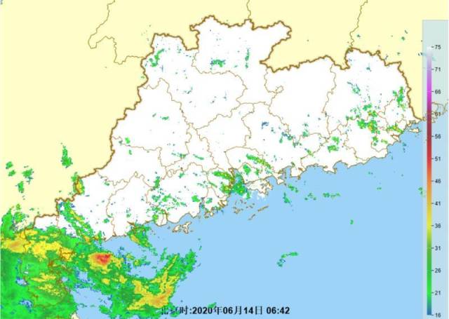 從雷達回波圖看,湛江降雨已經逐步減小,大范圍降雨集中在茂名東北部和陽江中部,同時臺風甩上岸的水汽也開啟了全省“隨機降雨”模式,各地均有涉及,但降水較為分散。