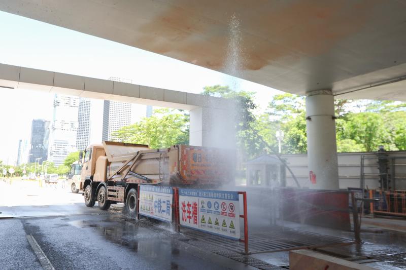 相信很多市民朋友對(duì)自卸車(俗稱“泥頭車”)的印象就是又吵又臟,對(duì)此記者在現(xiàn)場(chǎng)看到,福田區(qū)的工地已經(jīng)用上電動(dòng)自卸車,跟燒柴油的自卸車相比,不僅節(jié)能環(huán)保,且車子運(yùn)行的噪音也非常小。不僅如此,為了防止自卸車“帶泥上路”,工地的出口處還設(shè)有車輛自動(dòng)沖洗系統(tǒng),每輛泥頭車在駛出工地之前,都要經(jīng)歷一次“全身淋浴”,徹底沖干凈車身以及輪胎上的泥土之后才能離開(kāi)。