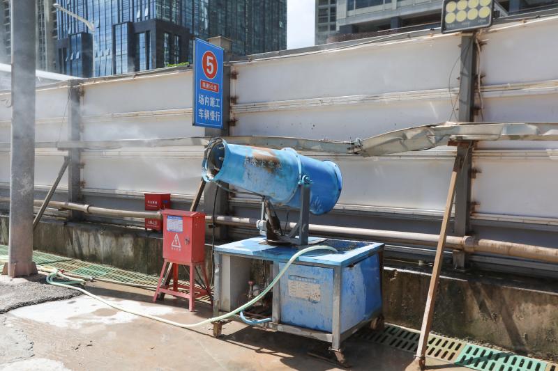 建筑工地可以說(shuō)是空氣污染和噪音污染的重災(zāi)區(qū)。福田區(qū)空氣環(huán)境和聲環(huán)境質(zhì)量的不斷提高,很大程度上要?dú)w功于福田區(qū)的施工工地抑塵降噪措施做得好。發(fā)布環(huán)節(jié)結(jié)束后,記者一行人來(lái)到崗廈北綜合交通樞紐施工現(xiàn)場(chǎng)一探究竟。