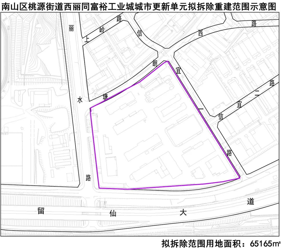 △南山區(qū)桃源街道西麗同富裕工業(yè)城城市更新單元擬拆除重建范圍示意圖