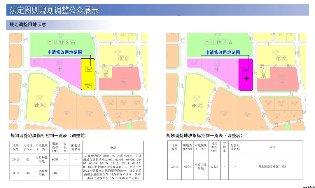 據(jù)悉,在擬調(diào)整前,03-10、03-11地塊規(guī)劃均為居住用地,用地面積分別為9057平方米、4163平方米。兩地塊與已建成的中國醫(yī)學科學院阜外深圳醫(yī)院南山院區(qū)僅一路之隔,位于其東側(cè),現(xiàn)狀為居住用地,建有6棟東西走向的住宅樓。