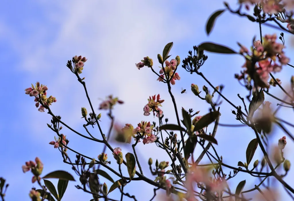 蓮花山公園入口處的鮮花吸引了兩位市民駐足觀看。