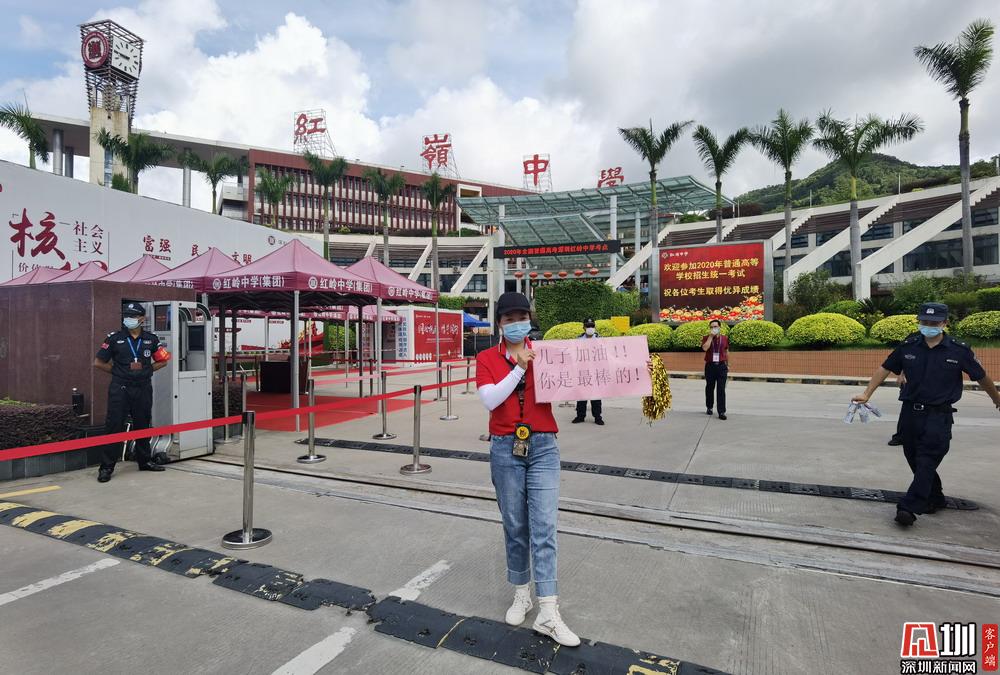 【紅嶺中學(xué)】門口正有一名家長(zhǎng)舉著“兒子加油!你是最棒的”標(biāo)語拍照留念