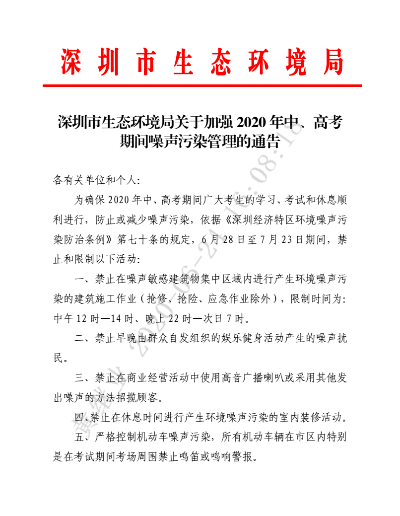 據(jù)了解,6月19日深圳市生態(tài)環(huán)境局發(fā)布了《深圳市生態(tài)環(huán)境局關(guān)于加強2020年中、高考期間噪聲污染管理的通告》,中午12點至下午14點、晚上10點至第二天早上7點是禁止施工時段,如果發(fā)現(xiàn)有施工行為可以直接立案查處并查封,而黃木崗綜合交通樞紐一工區(qū)就屬于此類情況。
