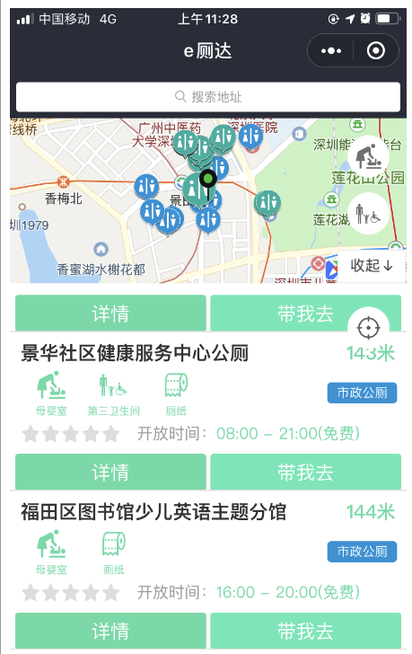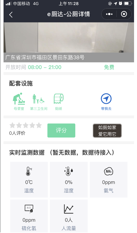 第二個(gè)功能是查看廁所情況。如果市民想知道廁所是否爆滿,有沒(méi)有母嬰室,衛(wèi)生情況如何,點(diǎn)擊任意廁所可查看每座公廁的詳細(xì)情況。