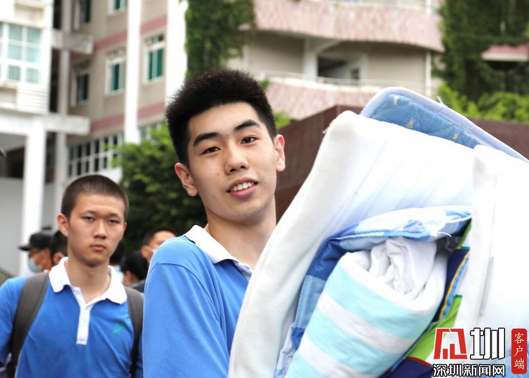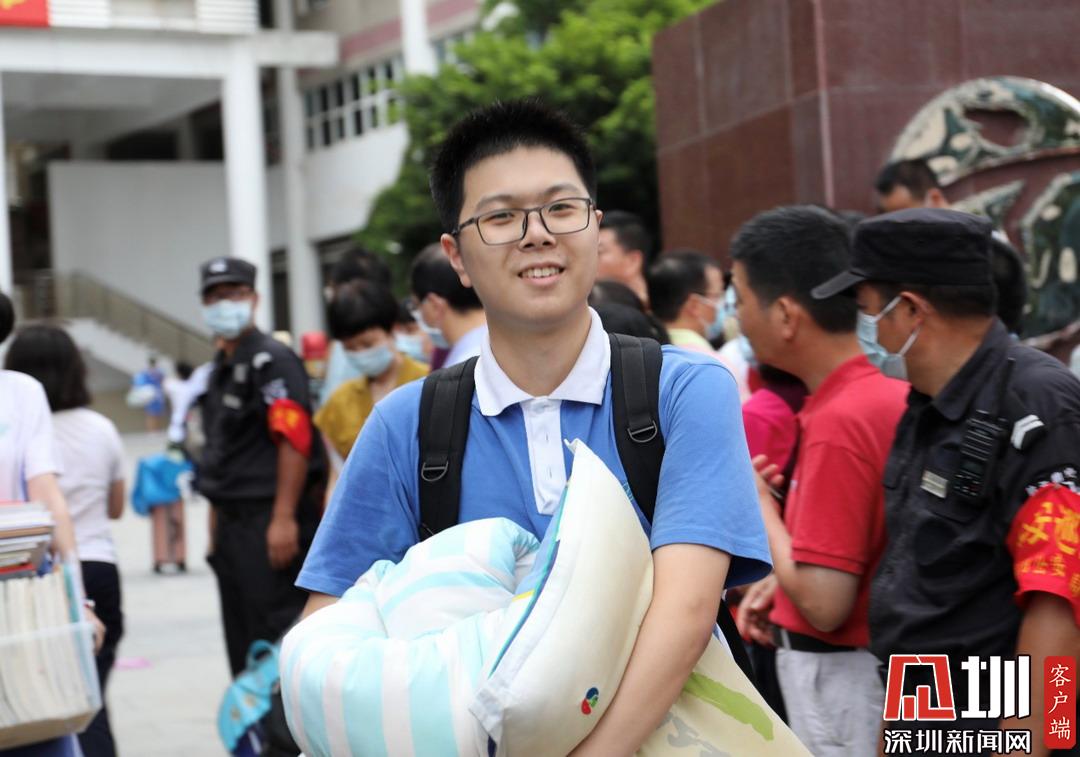 深圳高級(jí)中學(xué)考點(diǎn)外考生自信滿滿走出考場(chǎng)。