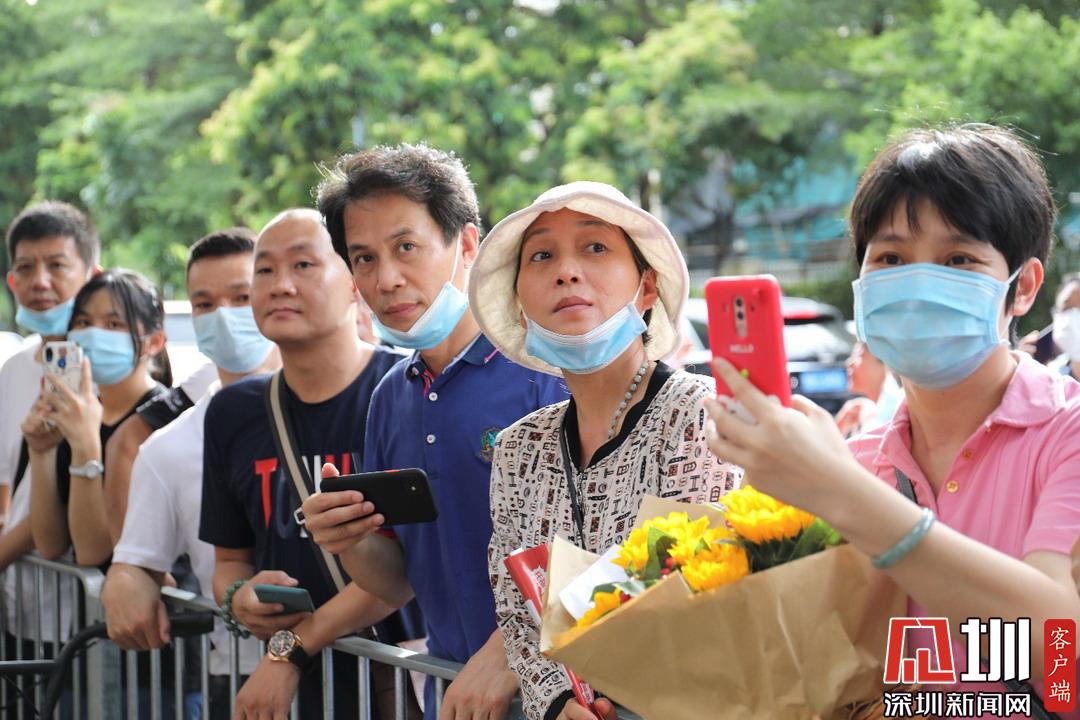 深圳高級(jí)中學(xué)考點(diǎn)外家長翹首以盼,等待考生走出考場(chǎng)。