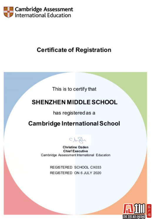 見圳客戶端·深圳新聞網(wǎng)2020年7月9日訊(見圳客戶端·深圳新聞網(wǎng)記者 梁榆其)7月6日,劍橋大學(xué)國(guó)際考評(píng)部英國(guó)總部發(fā)來注冊(cè)認(rèn)證證書,正式宣布深圳中學(xué)(以下簡(jiǎn)稱“深中”)成為具有開辦官方IGCSE和A-LEVEL課程資質(zhì)的劍橋?qū)W校。