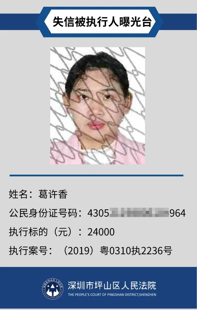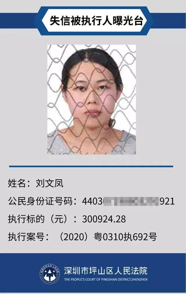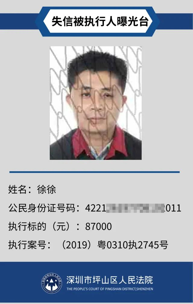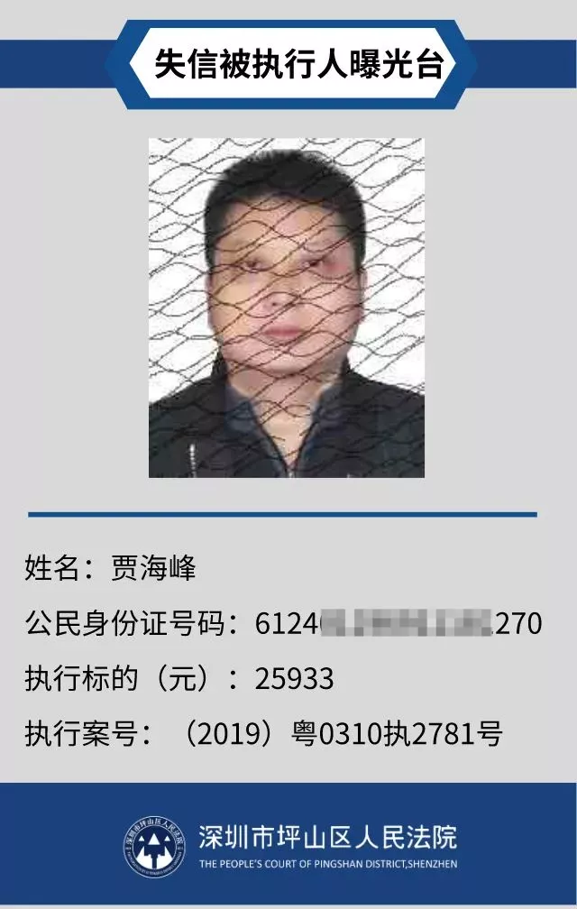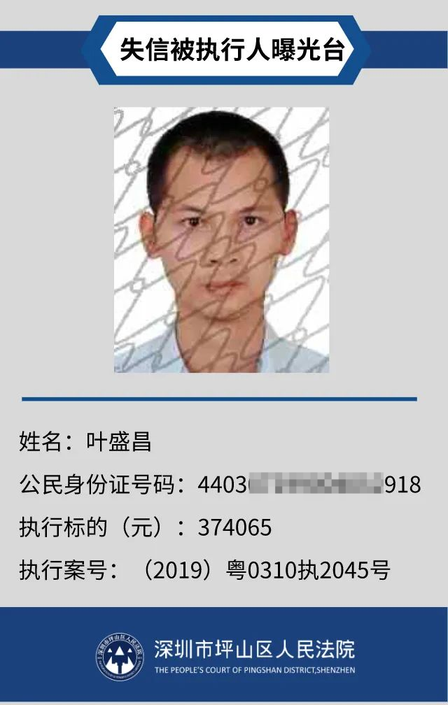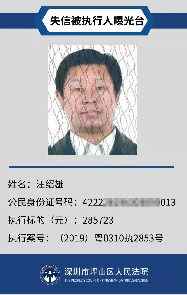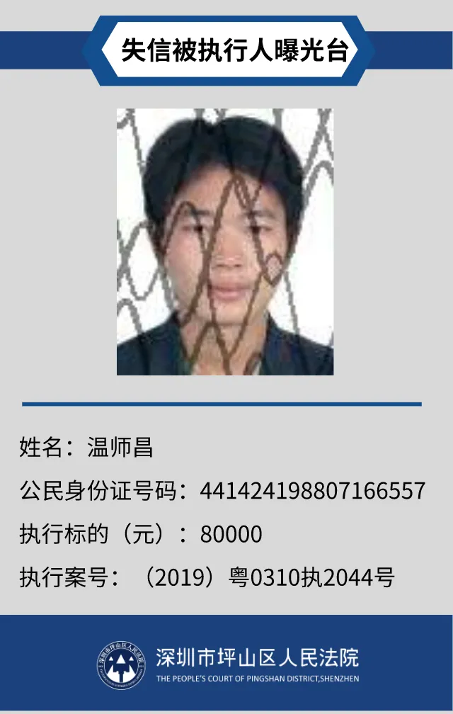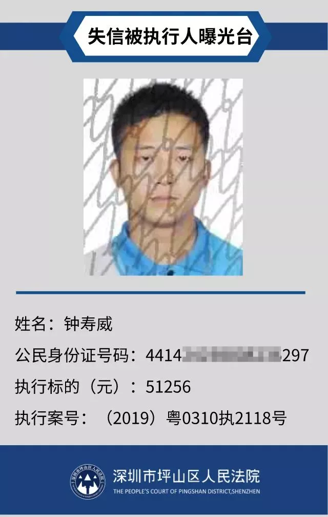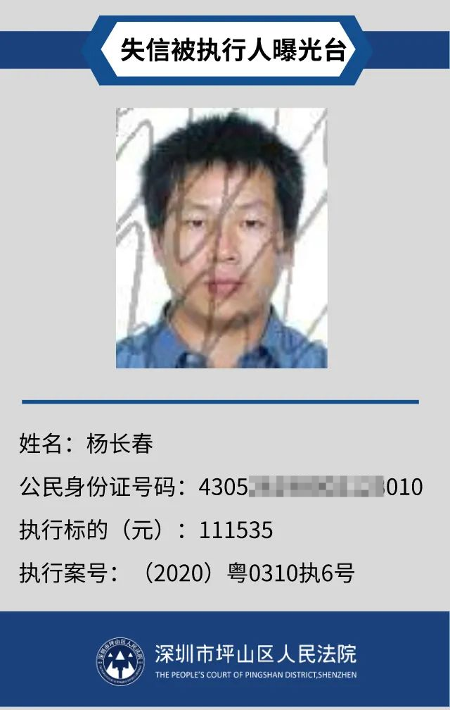 為督促被執(zhí)行人自覺(jué)履行生效法律文書(shū)確定的義務(wù),推進(jìn)社會(huì)誠(chéng)信體系建設(shè),深圳市坪山區(qū)人民法院根據(jù)《中華人民共和國(guó)民事訴訟法》第二百五十五條、《最高人民法院公布失信被執(zhí)行人名單信息若干規(guī)定》第一條和第七條之規(guī)定,現(xiàn)對(duì)31名失信被執(zhí)行人予以公布。名單信息根據(jù)案件結(jié)案情況及時(shí)更新,歡迎舉報(bào)失信被執(zhí)行人行蹤及財(cái)產(chǎn)線索,相關(guān)信息核實(shí)請(qǐng)聯(lián)系深圳市坪山區(qū)人民法院執(zhí)行局。