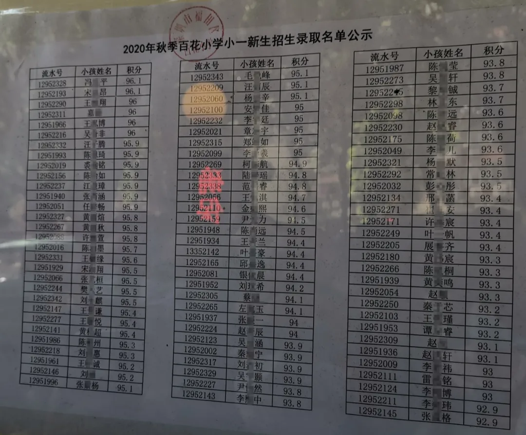 2020年福田區(qū)公辦小一新生錄取名單來了,部分學(xué)校最低錄取積分曝光