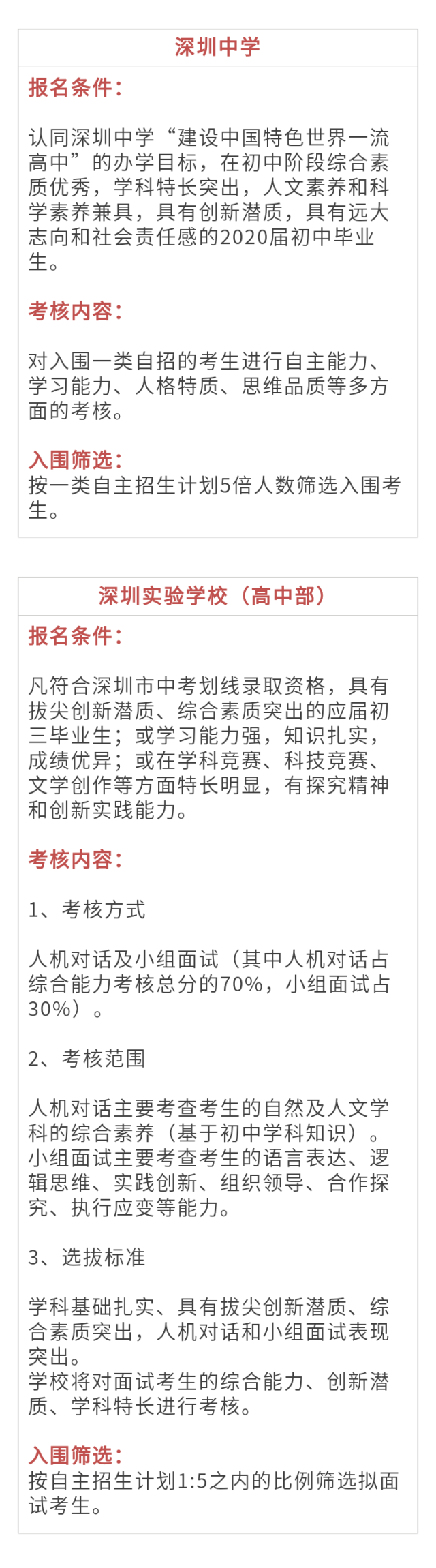 原標(biāo)題:招1385人!深圳2020年一類自主招生19所高中信息匯總