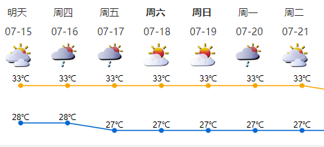 預(yù)計(jì)15-17日多云,有短時(shí)(雷)陣雨;18-20日天氣悶熱,局地偶有短時(shí)陣雨。
