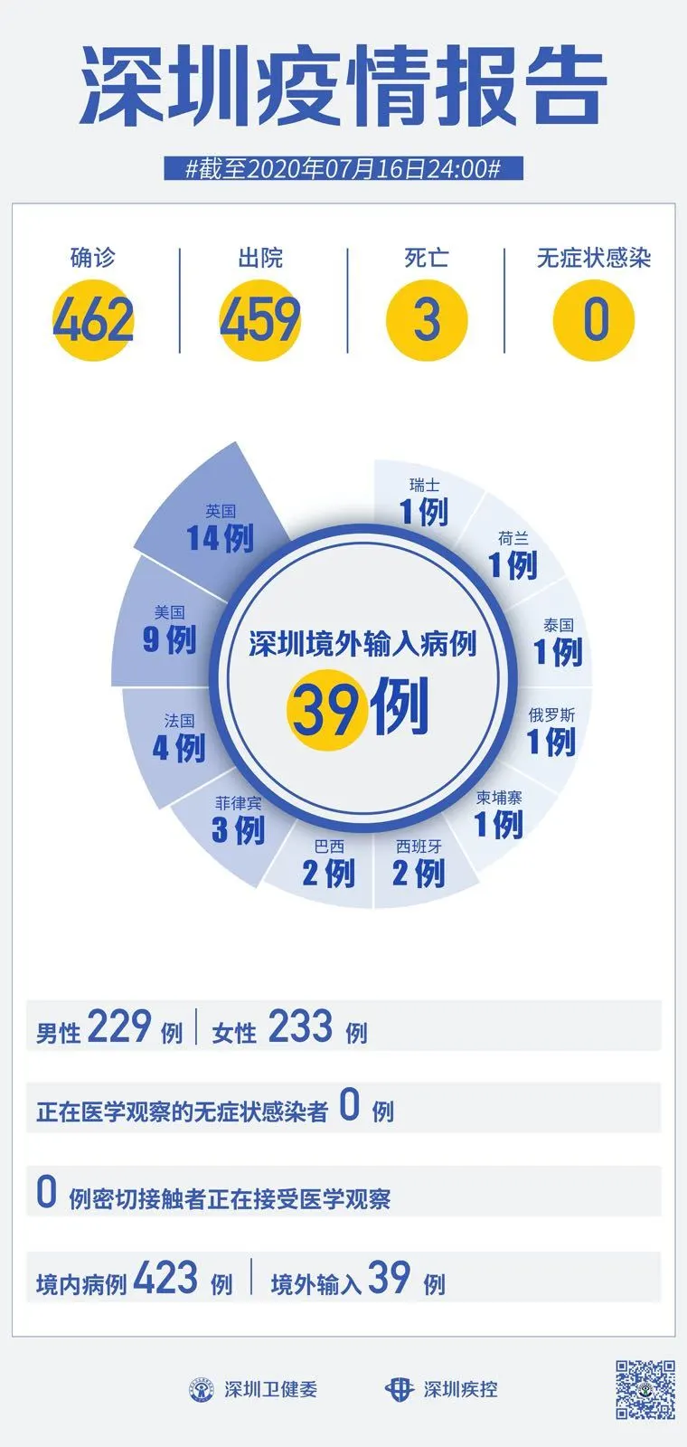 截至7月16日24時(shí),深圳累計(jì)報(bào)告新冠肺炎病例462例。