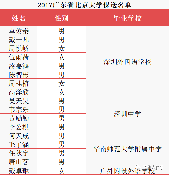2017年廣東省保送清北共24人,深圳16人,深外占11人;
