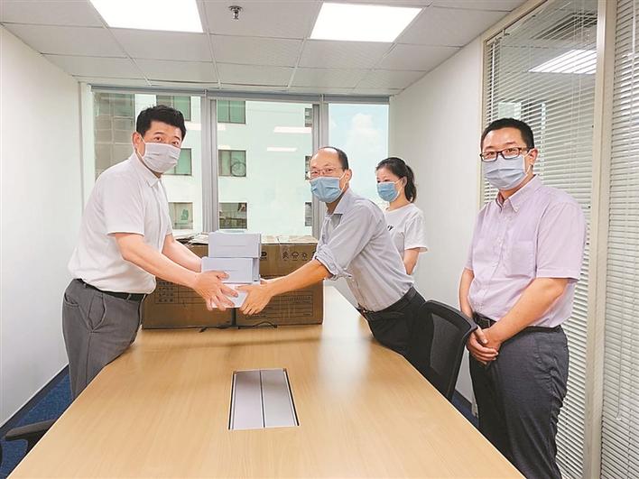 日籍華人(左一)張昊為深圳捐贈口罩。