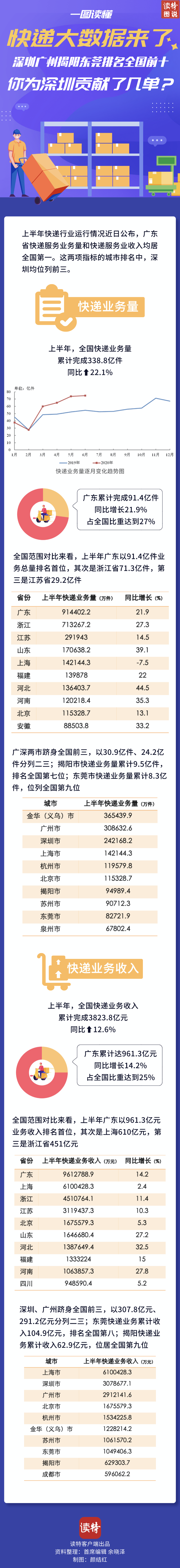 一圖讀懂|快遞大數(shù)據(jù)來了 深圳廣州揭陽東莞排名全國(guó)前十 你為深圳貢獻(xiàn)了幾單?