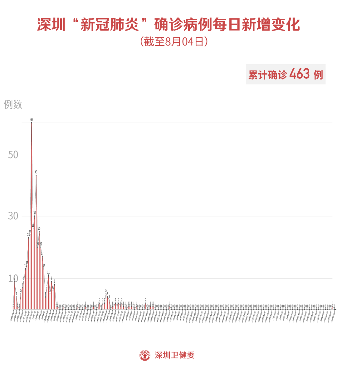 截至8月4日24時,深圳市累計報告新冠肺炎確診病例463例。目前在院1例。