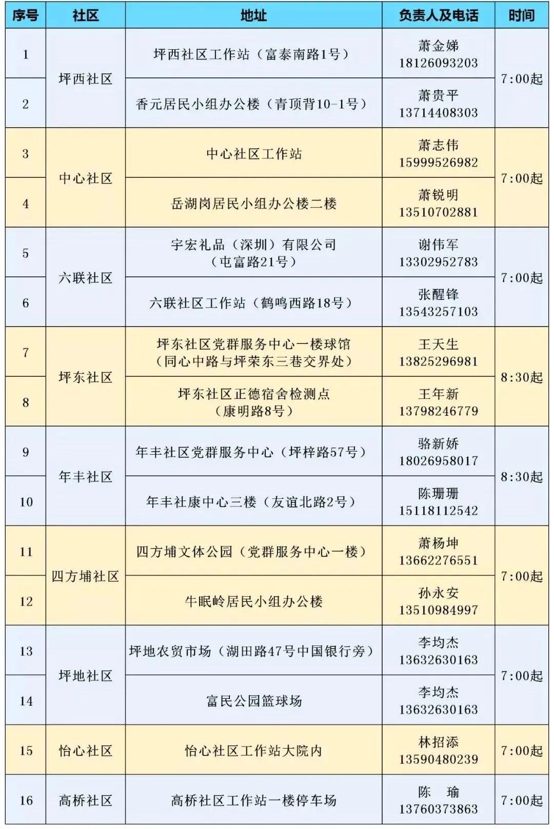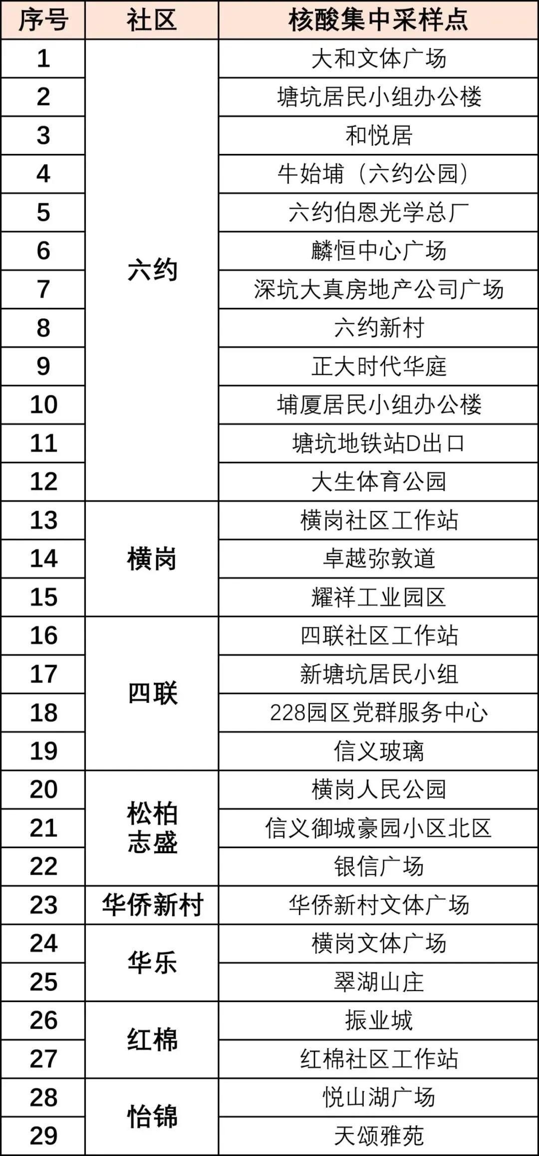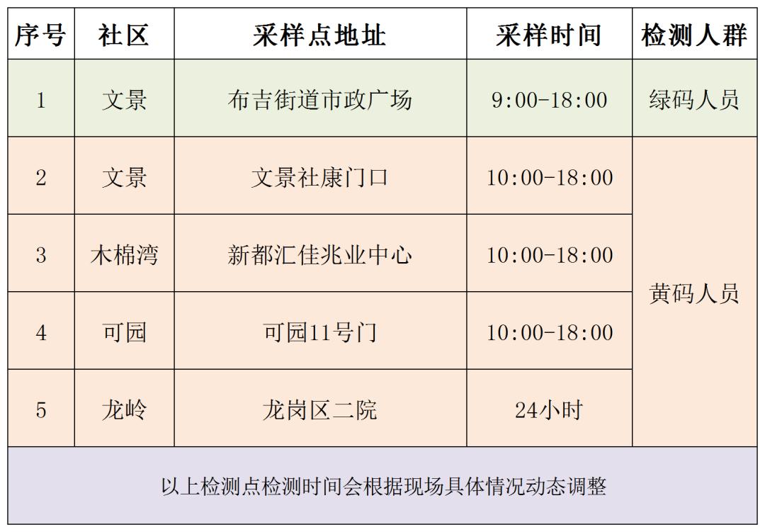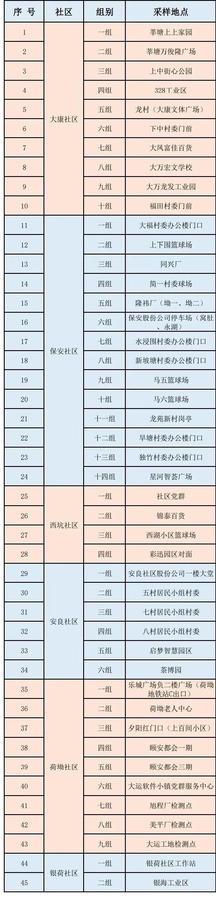 根據(jù)疫情防控需要,為最大程度保障人民群眾生命安全和身體健康,龍崗區(qū)各街道于1月10日開展新一輪免費核酸檢測以下點位統(tǒng)計截至1月10日。各點位動態(tài)更新請以社區(qū)通知及現(xiàn)場實際情況為準(zhǔn)。