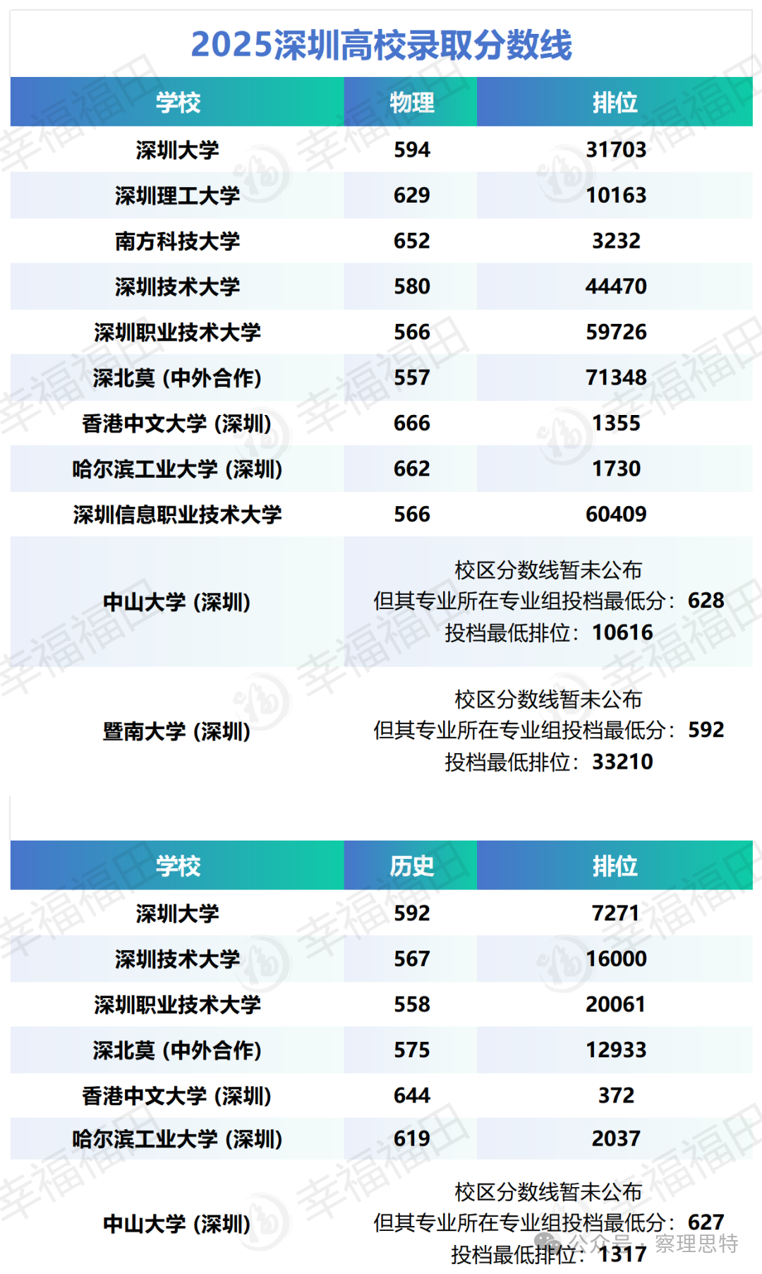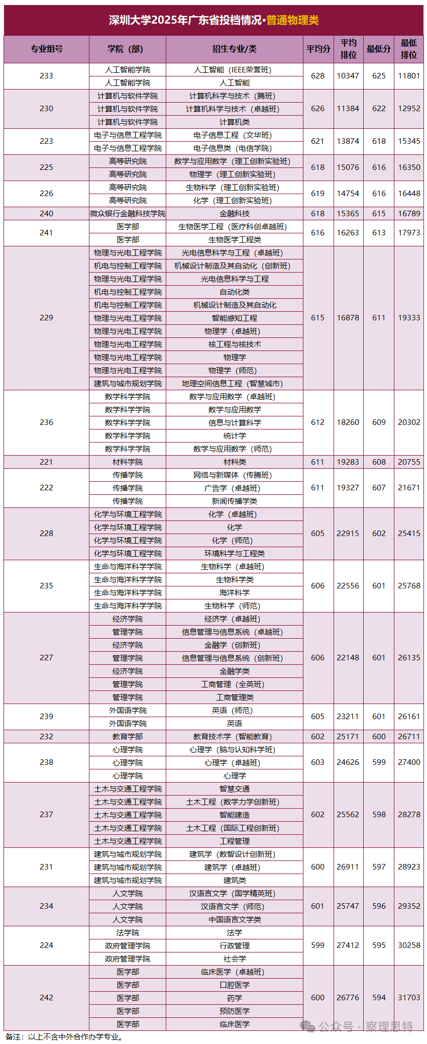 以下是深圳各高校的具體投檔情況