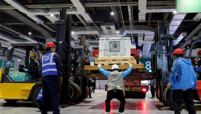 當(dāng)日,來自德國的首屆進口博覽會最大展品——“金牛座”龍門銑床完成初步組裝,將運往國家會展中心(上海)3號館進行最后的安裝施工。