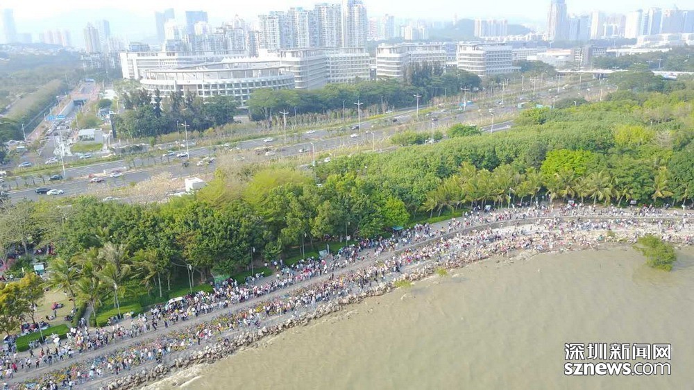 深圳灣公園內(nèi)人流來往景象