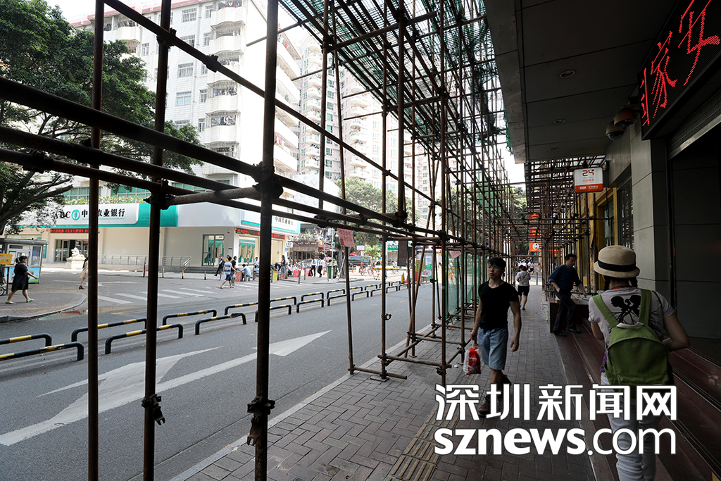 記者從白石洲地鐵站A出口出來(lái),沿著白石洲(北區(qū))沙河街,穿過(guò)正在施工的鋼架,一步步走進(jìn)深圳最大的城中村——白石洲