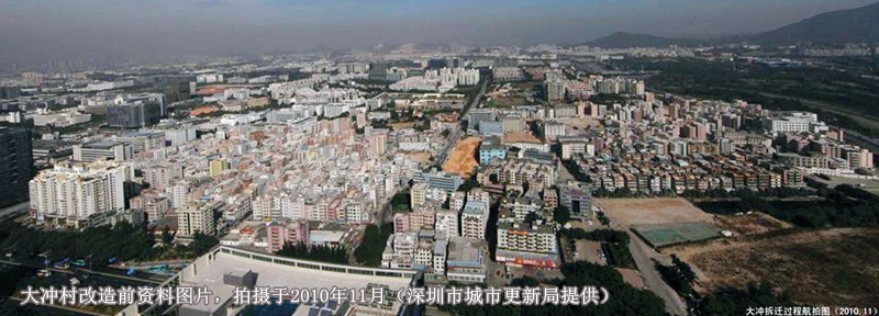 改造前,大沖村現(xiàn)狀用地呈現(xiàn)隨意開發(fā)的“城中村”形態(tài),基礎設施比較缺乏,建筑密度大,改造難度較大,舊村改造涉及到1000戶左右原居民及300多戶非原居民的動遷、7萬多暫住人口的搬遷、近1500多棟建筑、約110萬平方米的拆除,是深圳市規(guī)模最大的城中村改造項目。