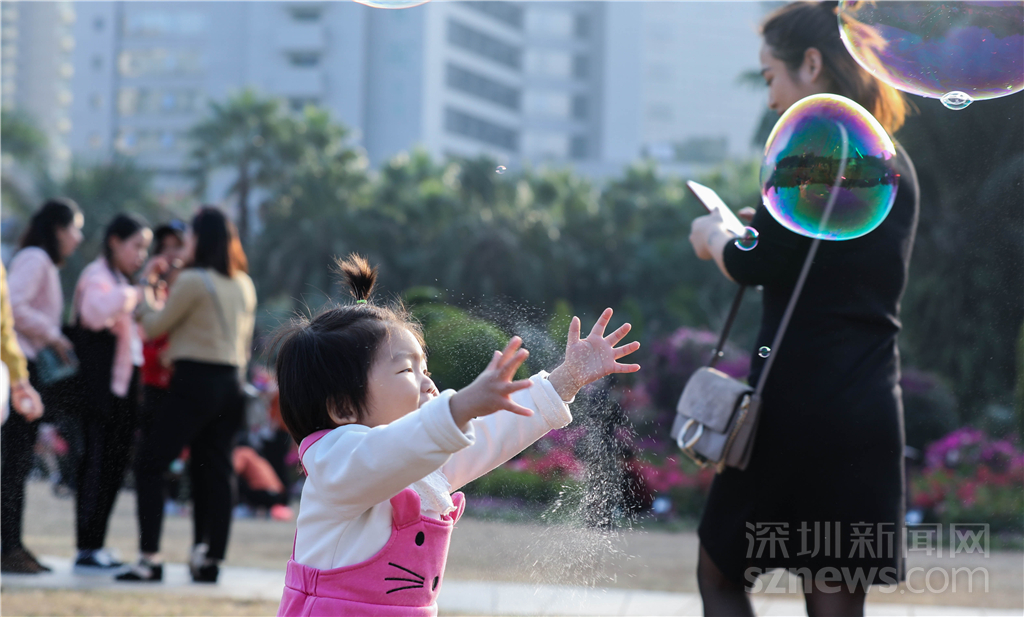 孩子在這花兒的海洋里,被冬日的陽光曬得心中都是暖暖的