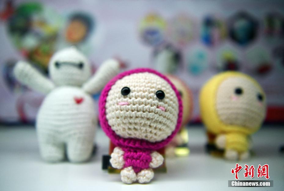 四川樂山29歲的陳艷因“先天性脆骨癥”被稱為“瓷娃娃”,下肢無(wú)力支撐正常行走,其在愛心人士的鼓勵(lì)和幫助下,用毅力、勤奮和靈巧的雙手,在逆境中快樂堅(jiān)強(qiáng)生活。圖為3月1日,陳艷用毛線制作的精美小飾品。