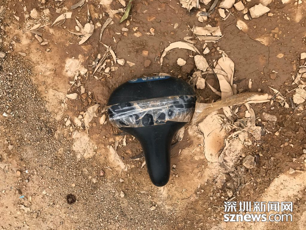 大量的小藍單車堆放在龍崗區(qū)水官高速旁的空地