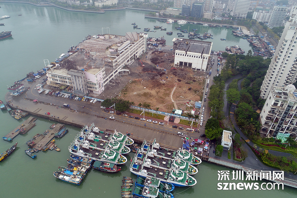 從高空俯瞰,漁人碼頭水產(chǎn)交易市場和制冰廠房屋的房屋拆除速度非???,不少拆除機(jī)器正在工作