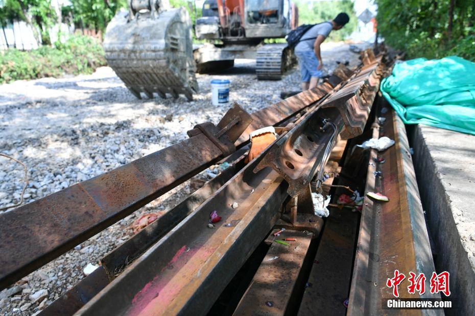5月8日,穿過昆明市區(qū)的百年滇越鐵路一段已經(jīng)被拆除。當(dāng)日,昆明地鐵4、5號(hào)線正在進(jìn)行建設(shè),由于施工影響,穿城而過的一段百年滇越鐵路被拆除,“老鐵路”為“新地鐵”建設(shè)讓步。據(jù)了解,在地鐵建設(shè)完工后,這段滇越鐵路將被重新鋪設(shè),恢復(fù)運(yùn)營。中新社記者 任東 攝