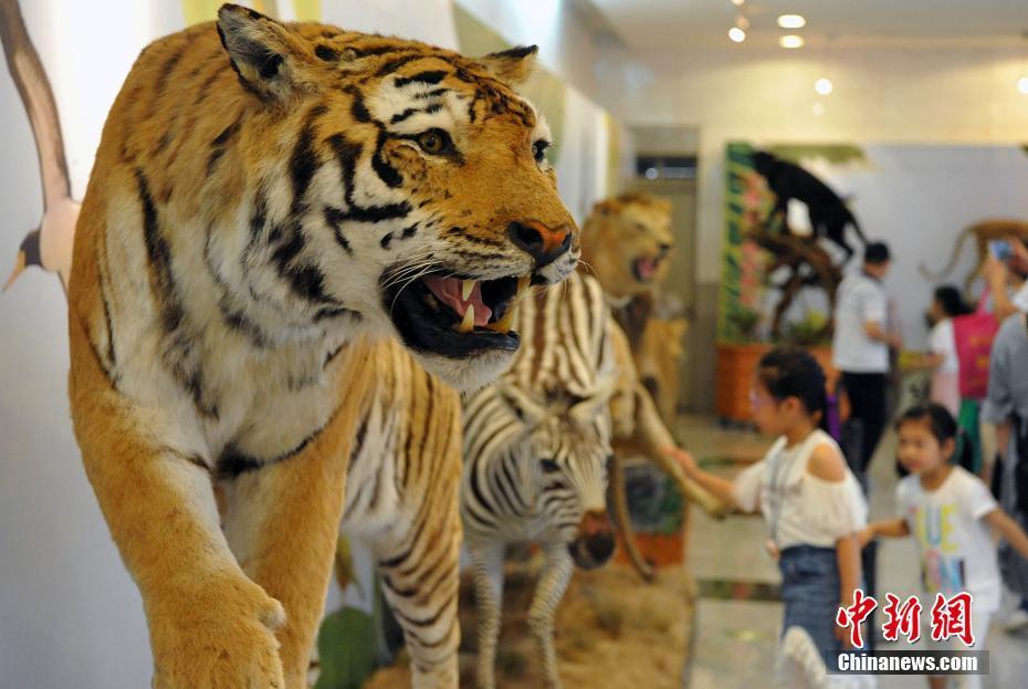 5月27日,各類飛禽走獸活靈活現(xiàn)地出現(xiàn)在民眾的眼前。正在福建博物院展出的第四屆中國動物標(biāo)本大賽的257件惟妙惟肖的標(biāo)本作品集中對外開放,讓民眾如進(jìn)入“動物世界”。本次大賽匯集了全國標(biāo)本制作企業(yè)、博物館、大專院校、研究所等60多家單位參加,標(biāo)本涵蓋哺乳類、鳥類、爬行類、兩棲類、魚類等動物類群的皮張和骨骼標(biāo)本。主辦方希望通過標(biāo)本大賽,向公眾展現(xiàn)動物世界的美麗,宣傳生物多樣性和生態(tài)文明,借鑒吸收國際標(biāo)本制作先進(jìn)經(jīng)驗(yàn),提高中國野生動植物標(biāo)本制作的整體水平。圖為參賽的老虎標(biāo)本。中新社記者 張斌 攝