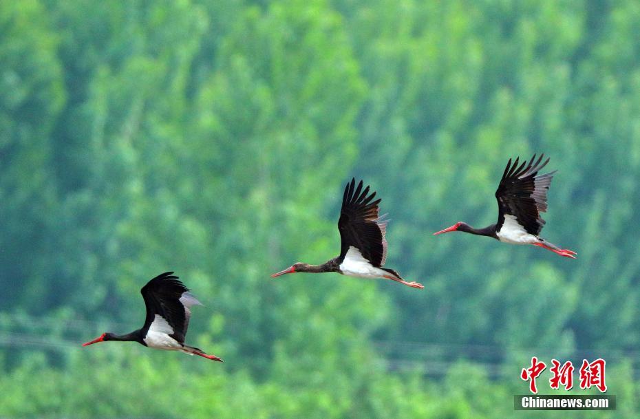 7月1日,河北石家莊平山崗南水庫下游滹沱河段發(fā)現(xiàn)成群黑鸛,最多時(shí)達(dá)12只,黑鸛是大型涉禽,屬國家一級(jí)保護(hù)動(dòng)物,也是世界瀕危珍禽,已被《瀕危野生動(dòng)植物國際貿(mào)易公約》列為瀕危物種。中新社發(fā)于英杰 攝