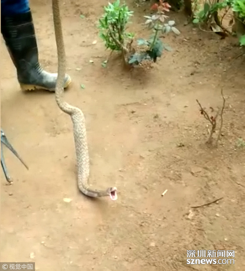 在印度Koppa,一條2.4米長的眼鏡蛇在逃跑時(shí)吐出四個(gè)雞蛋。這條蛇突襲雞舍殺死一只雞,吃了4個(gè)雞蛋,但逃跑時(shí)身體沉重、行動(dòng)緩慢,就把雞蛋吐了出來。