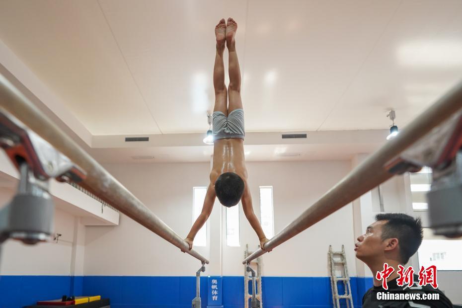 7月16日,小學員張涵(右)在貴州榕江縣少年兒童業(yè)余體操運動學校內進行體操訓練。位于月亮山深處的貴州省黔東南苗族侗族自治州榕江縣,數(shù)十年來堅持少年兒童體操培養(yǎng)、訓練,對于全縣有良好身體條件的少年兒童進行免費集中培訓。目前該縣每年有60余名兒童在業(yè)余體操運動學校進行訓練。炎炎夏日,孩子們不懼酷暑,刻苦訓練追尋著自己的“體操夢”。據(jù)了解,自1972年以來,榕江縣先后向貴州省體操隊、蹦床隊輸送了21名運動員;其中有6名運動員進入國家體操隊,10名運動員榮獲“國家健將級運動員”稱號,5名運動員榮獲“國際健將級運動員”稱號,其中體操名將劉榕冰是2014年體操世錦賽男團冠軍成員之一。2004年,榕江縣被貴州省體育局授予“貴州體操之鄉(xiāng)”稱號。中新社記者賀俊怡 攝