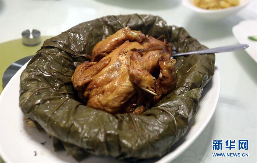 這是在香港灣仔杭州酒家拍攝的“叫化雞”(6月16日攝)。 金庸在武俠小說《神雕俠侶》中借郭靖之口說過: “為國為民,俠之大者?!蔽鋫b精神在香港備受推崇,有其心向中華文化的情感基礎(chǔ)。在這個(gè)國際美食之都,品味舌尖上的武俠味,內(nèi)中的感覺別有深意。新華社記者 李鵬 攝