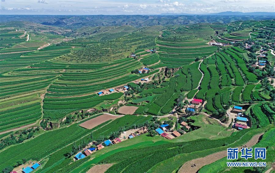 寧夏固原市彭陽縣的梯田(7月16日無人機拍攝)。 新華社記者王鵬 攝