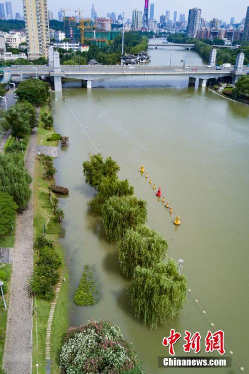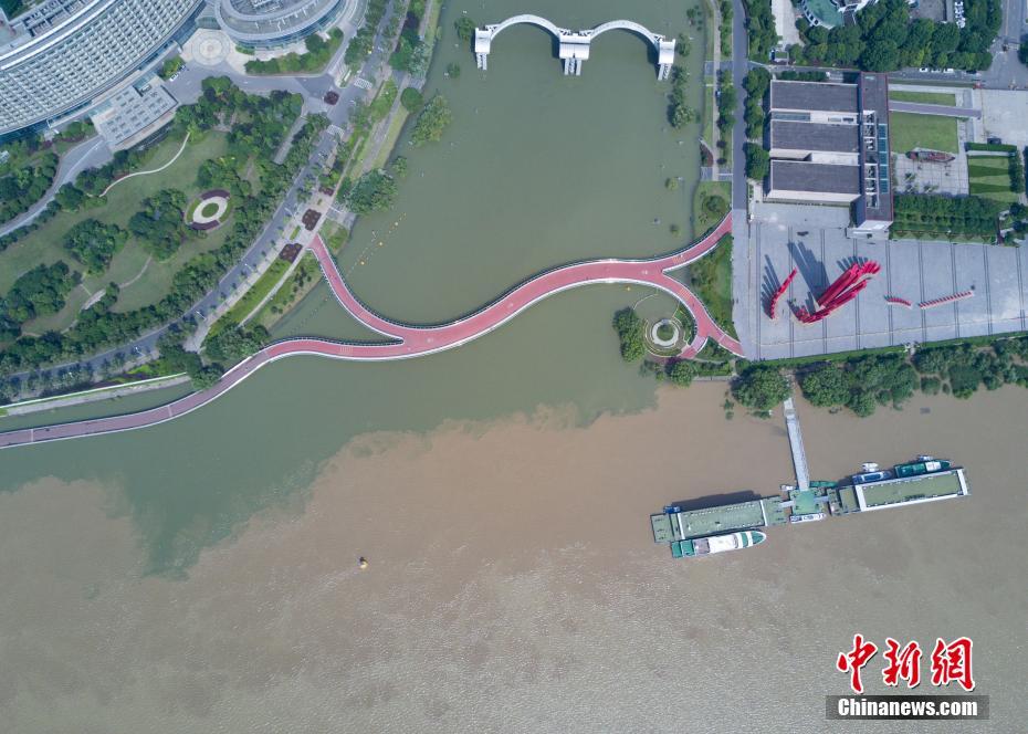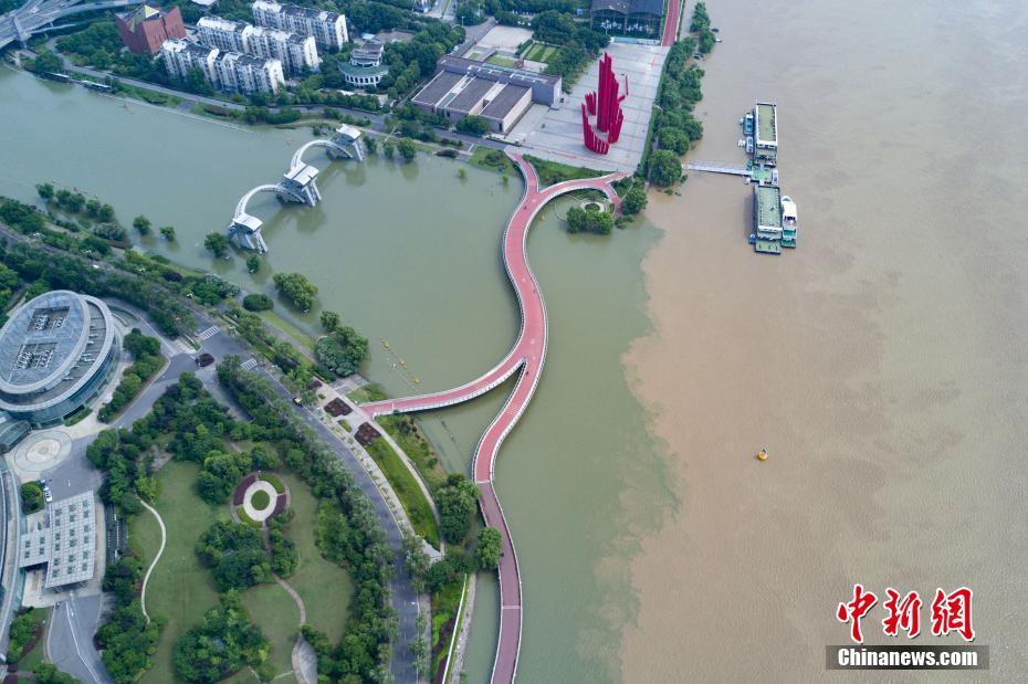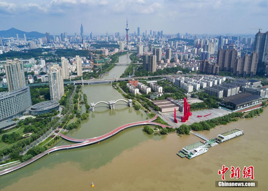 7月10日,航拍長(zhǎng)江與南京秦淮河交匯處,樹木淹入水中。當(dāng)日,江蘇水利廳發(fā)布的水情信息顯示,長(zhǎng)江南京段水位已降至警戒線以下。中新社記者泱波 攝