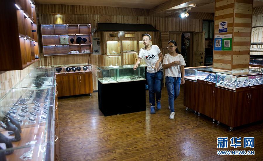 8月3日,前來體驗銀飾制作的青少年參觀龍?zhí)柕你y飾陳列展臺。