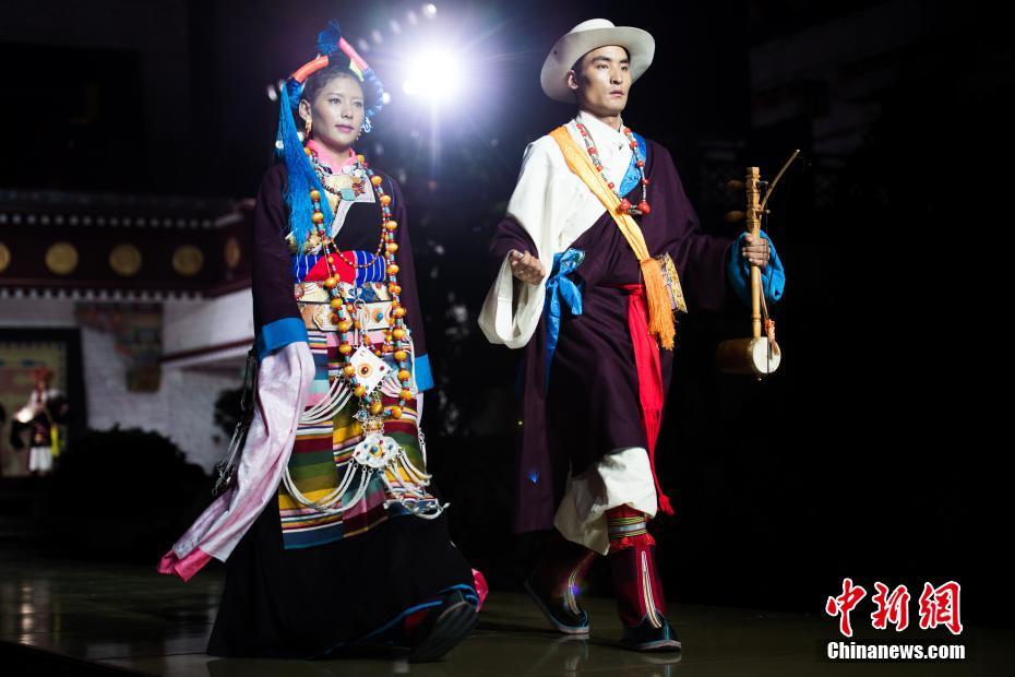 8月12日晚,由西藏職業(yè)技術學院與北京服裝學院共同打造的“凈美雪頓·美好生活”西藏民族服裝與服飾展演活動在拉薩舉行?,F(xiàn)場通過傳統(tǒng)篇、現(xiàn)代篇與未來篇三個篇章,展演了藏族傳統(tǒng)服裝26套,設計創(chuàng)新服裝58套,共計84套服裝。圖為模特展示藏族傳統(tǒng)服飾。中新社記者何蓬磊 攝