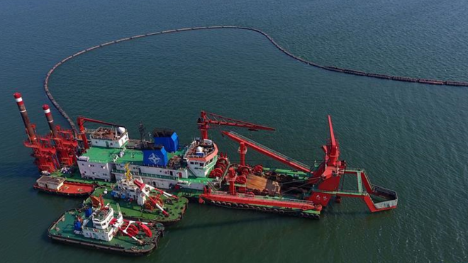 村民在民俗文化節(jié)上參加趣味劃菱桶比賽,吸引眾多游客、村民觀看(8月23日無人機拍攝)。